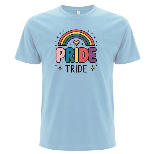T-shirt med texten “Pride” i regnbågsfärg (Unisex)