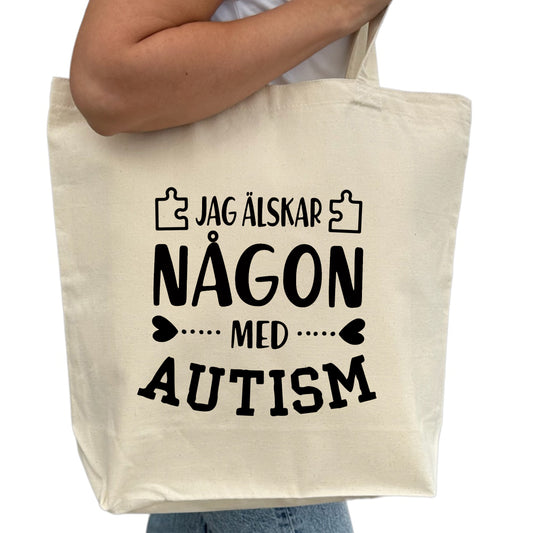 Jag älskar någon med Autism - Tygpåse 💙 Kärlek & acceptans – bär ditt stöd med stolthet!