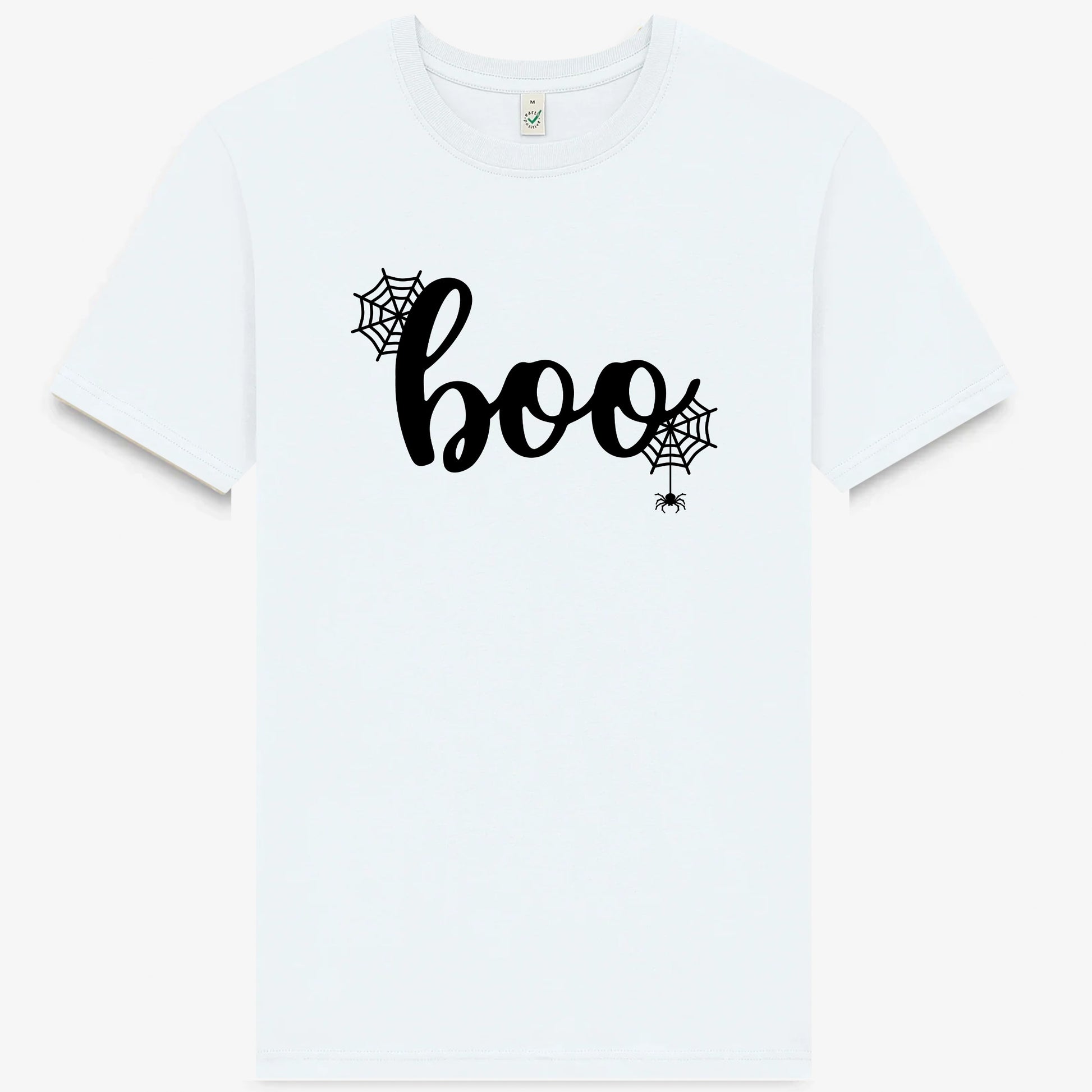 En stilren Halloween T-shirt med texten “Boo” – enkel, trendig och perfekt för både henne och honom. Unisexmodell i mjuk ekologisk bomull, passar lika bra till halloweenfesten som till vardags. Matcha med våra barnplagg eller babybodys för en enhetlig familjelook.