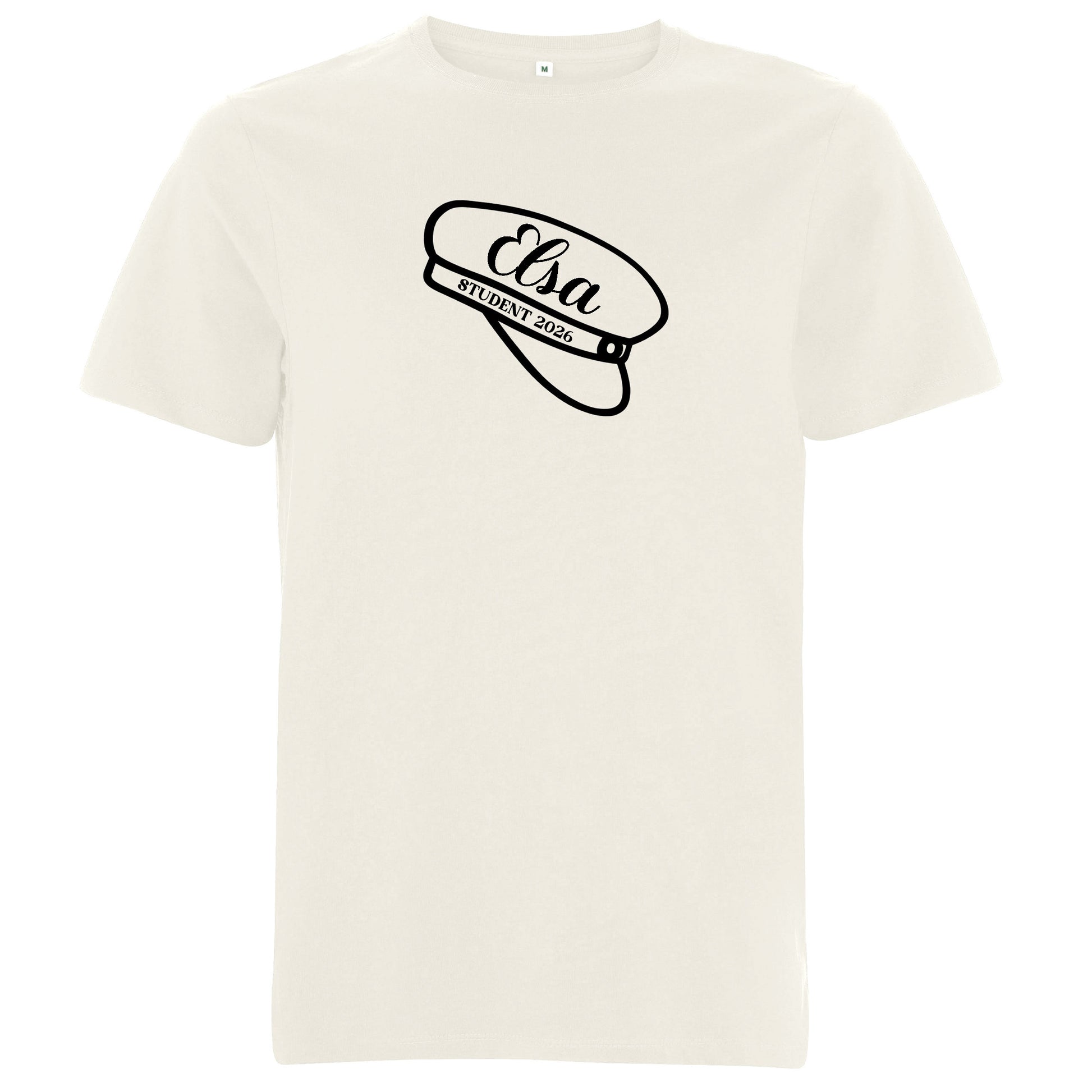 Studentmössan tillsammans med namn gör denna t-shirt både stilren och minnesvärd.