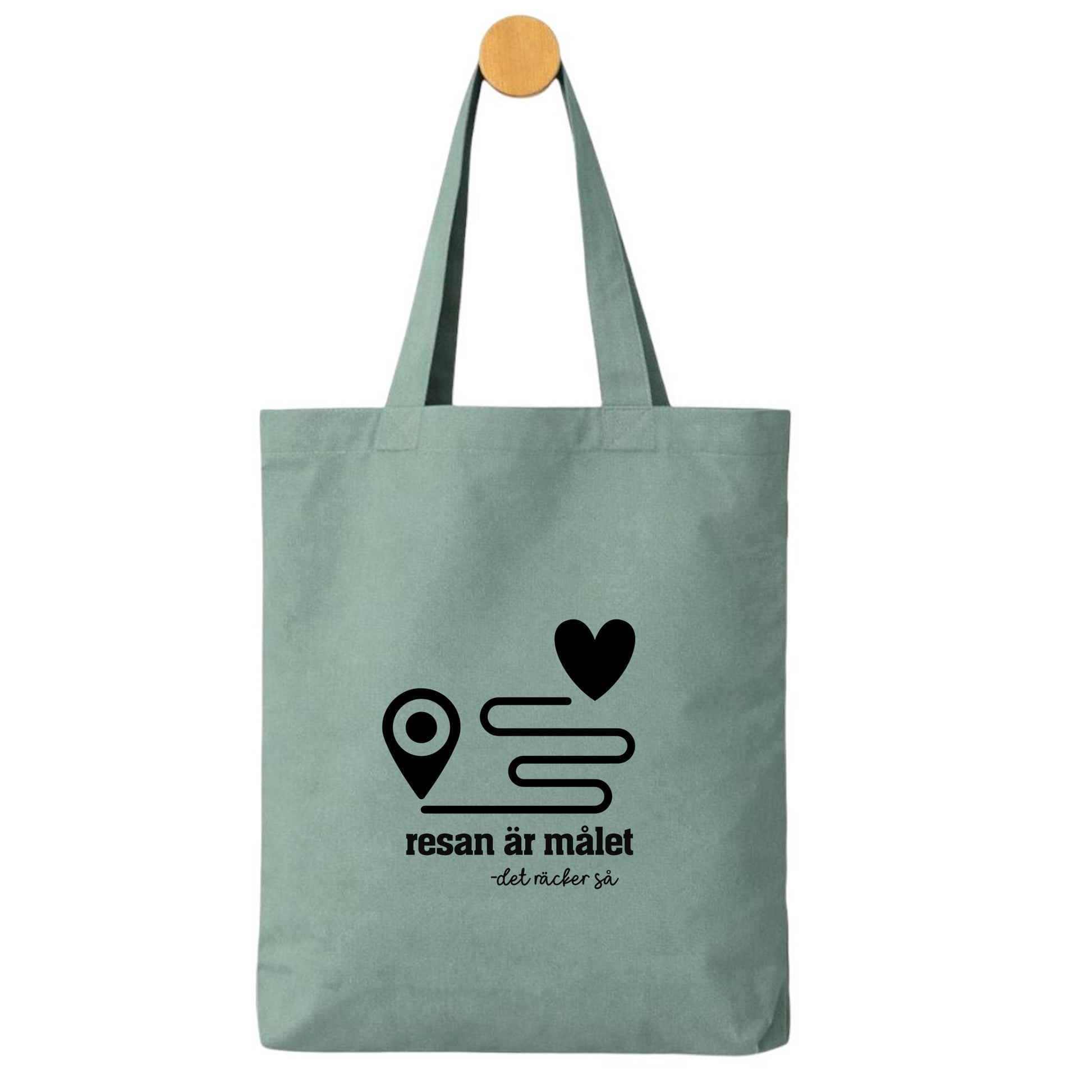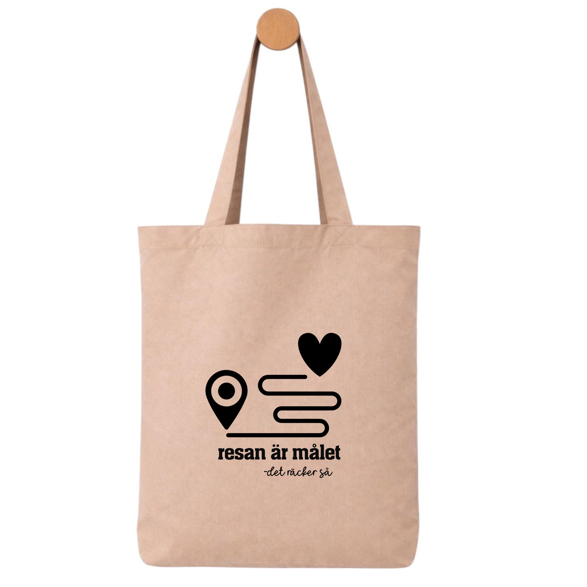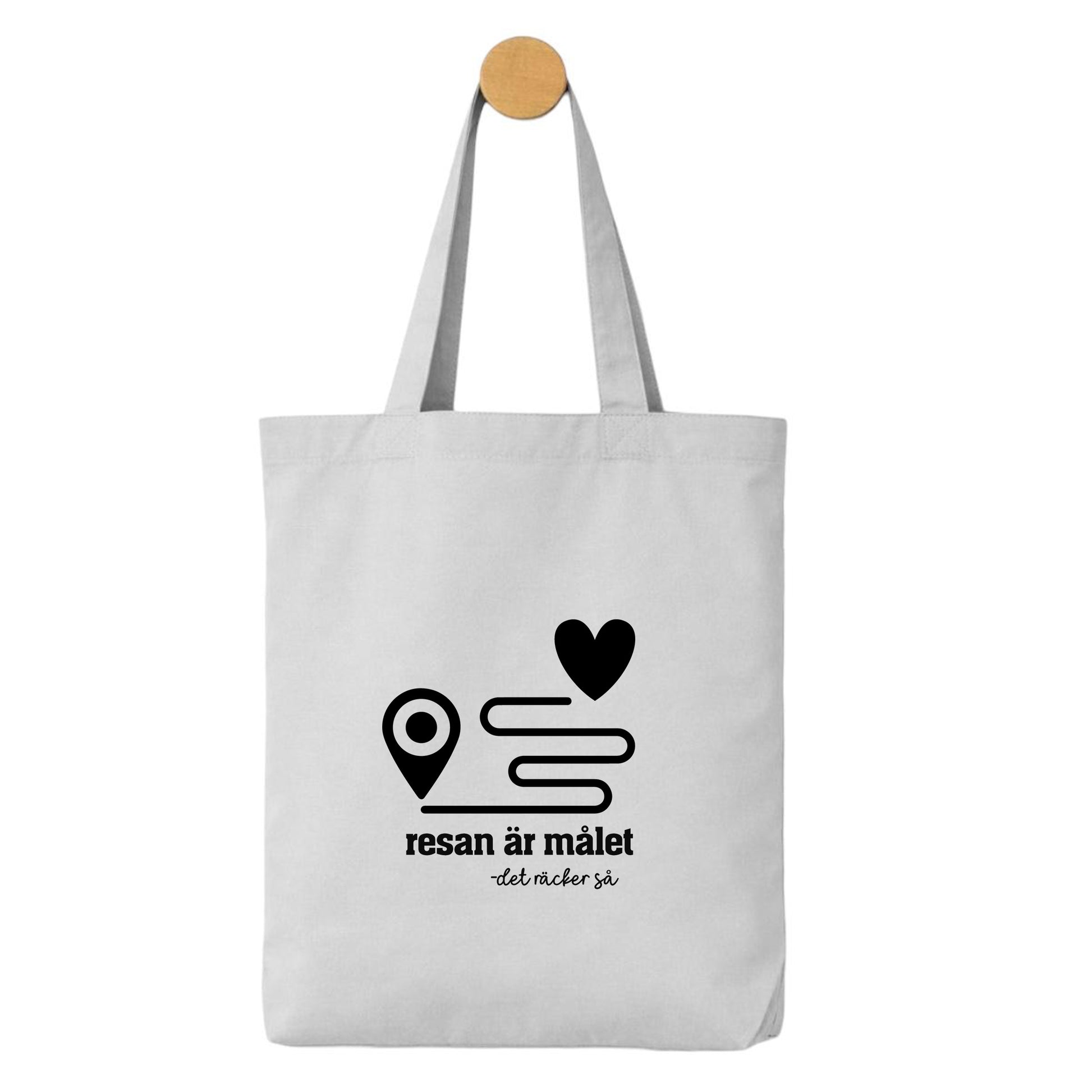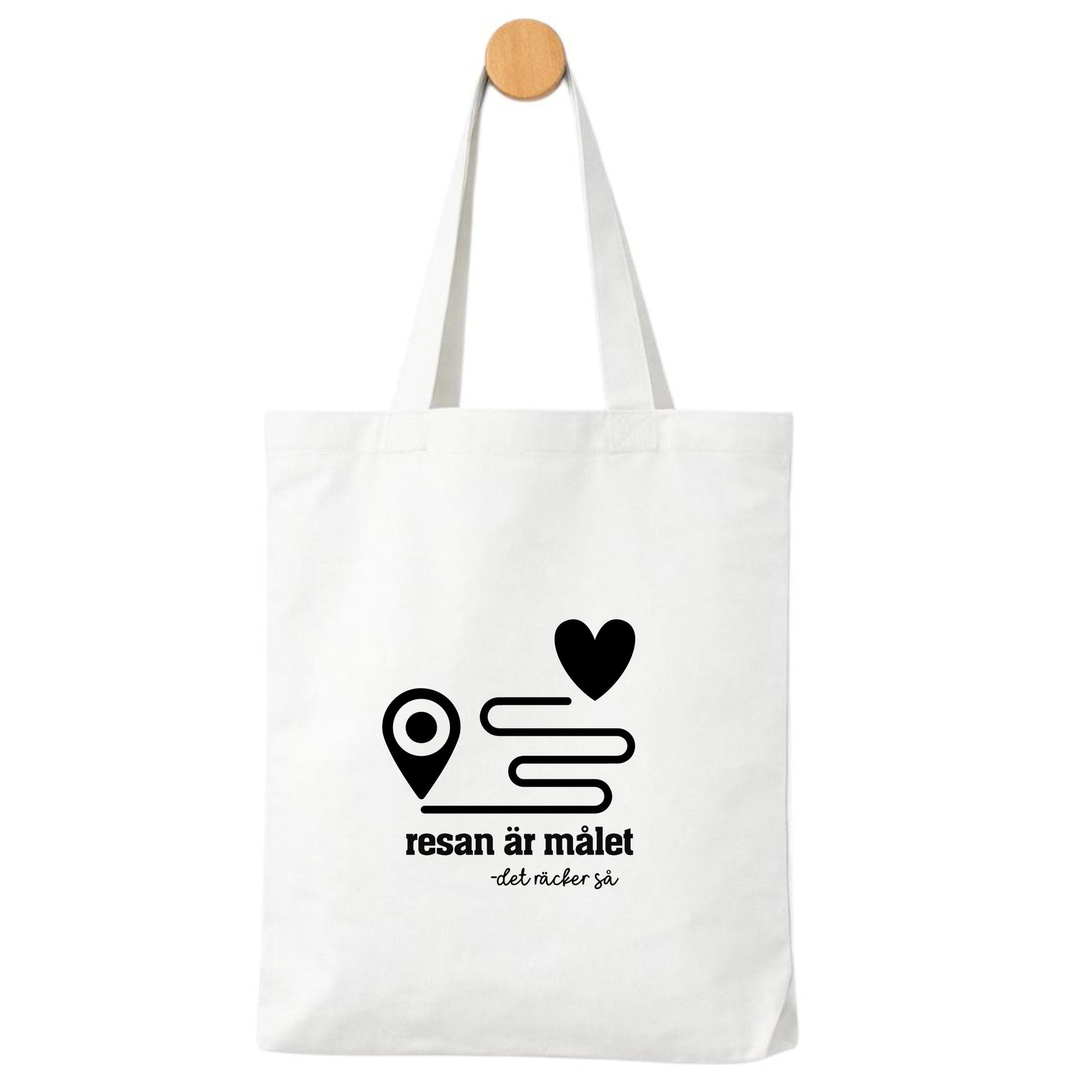 Denna tygpåse med texten ”Resan är målet – det räcker så” och stilrent resmotiv passar perfekt för alla som älskar vägen dit lika mycket som framme.