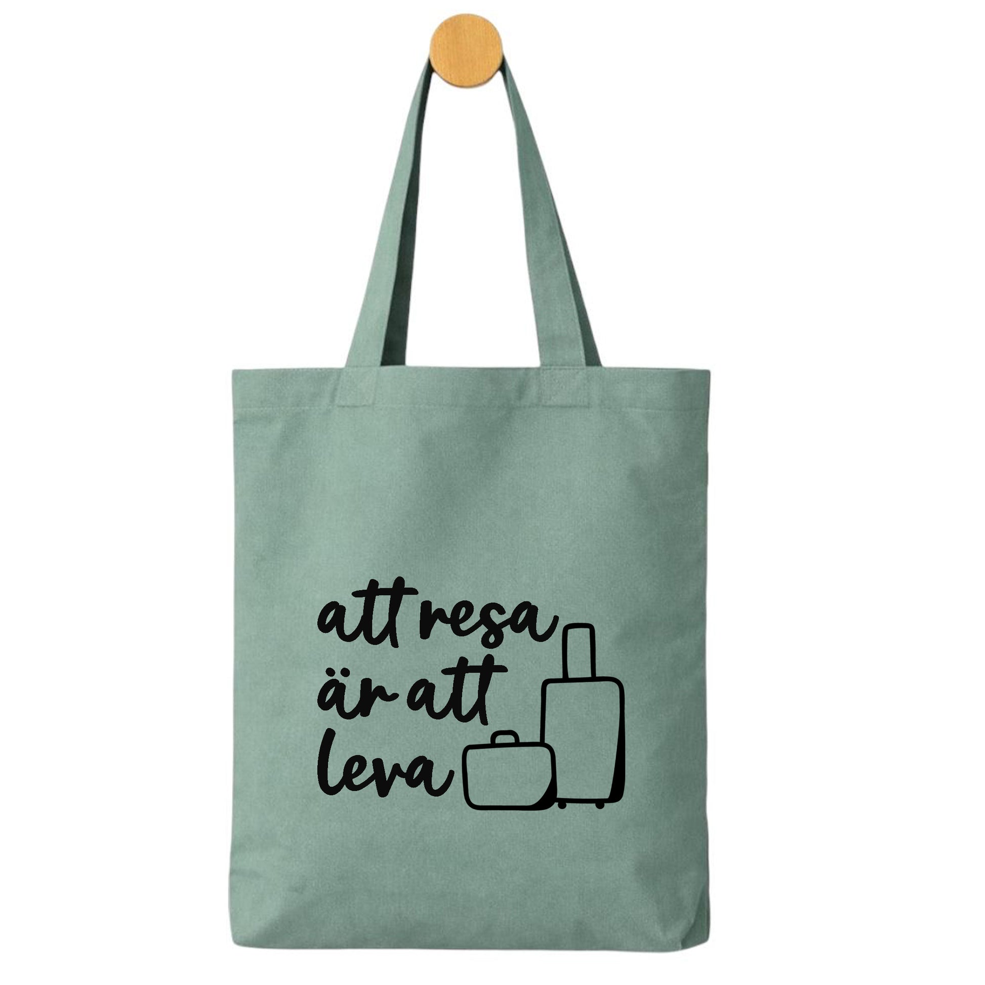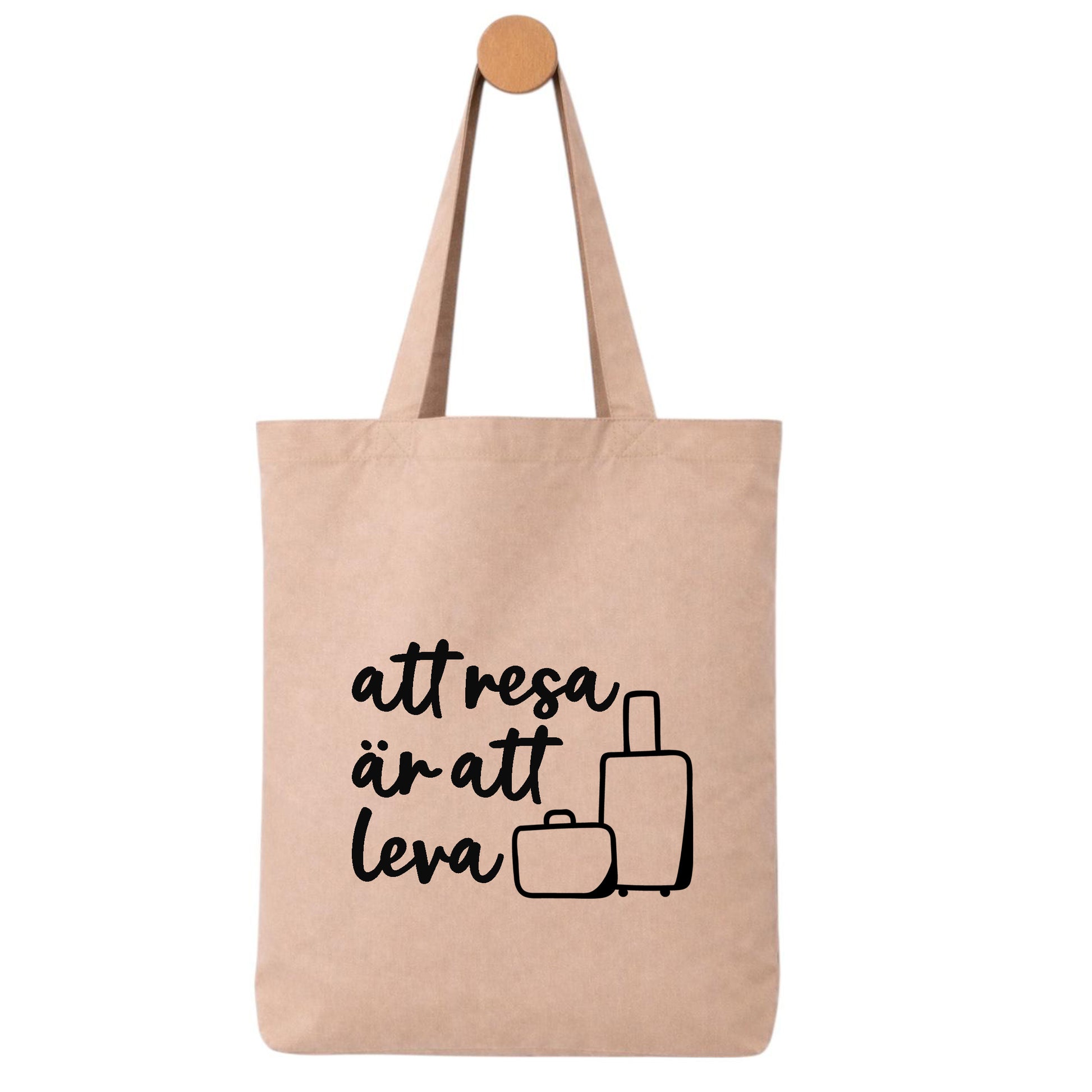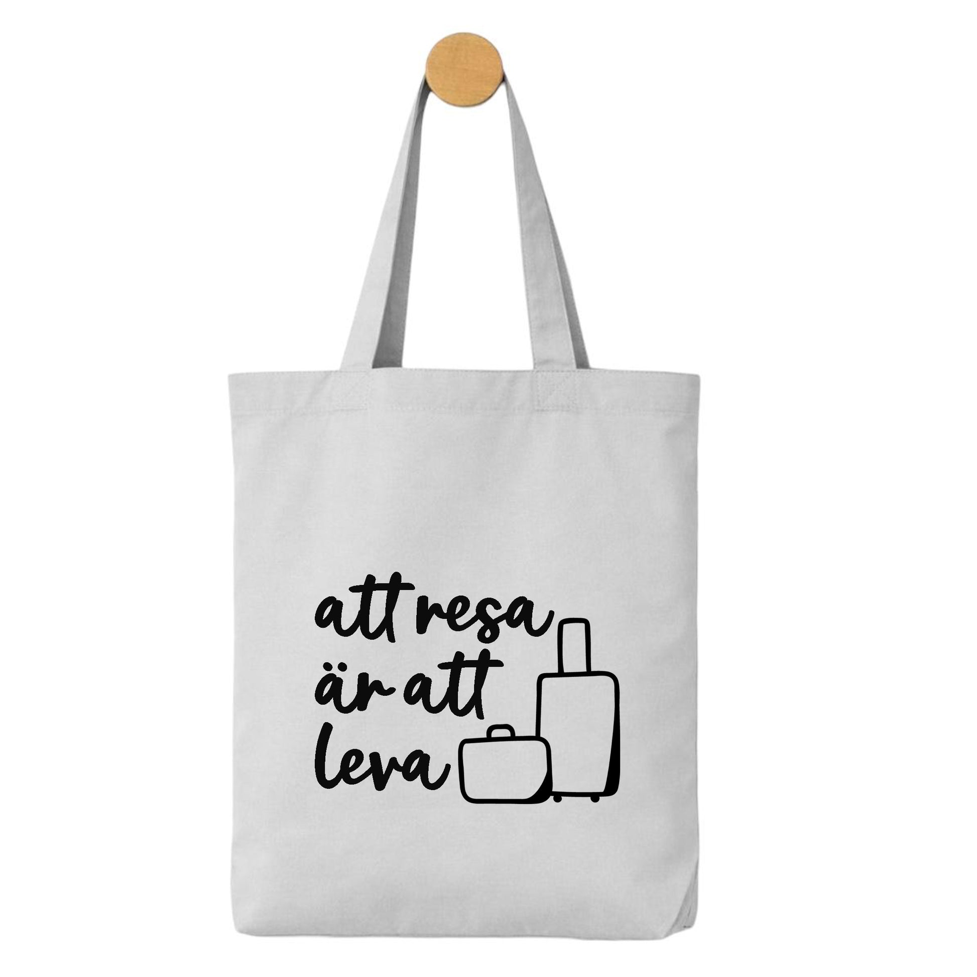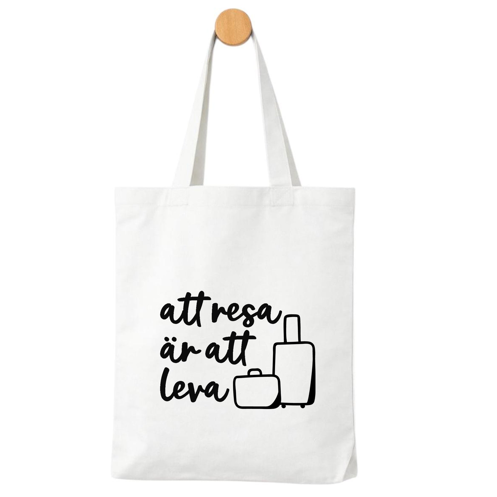 Denna tygpåse med texten ”Att resa är att leva” och stilrent resmotiv är perfekt för dig som alltid drömmer om nästa resa – eller vill bära med dig resefeelingen i vardagen.