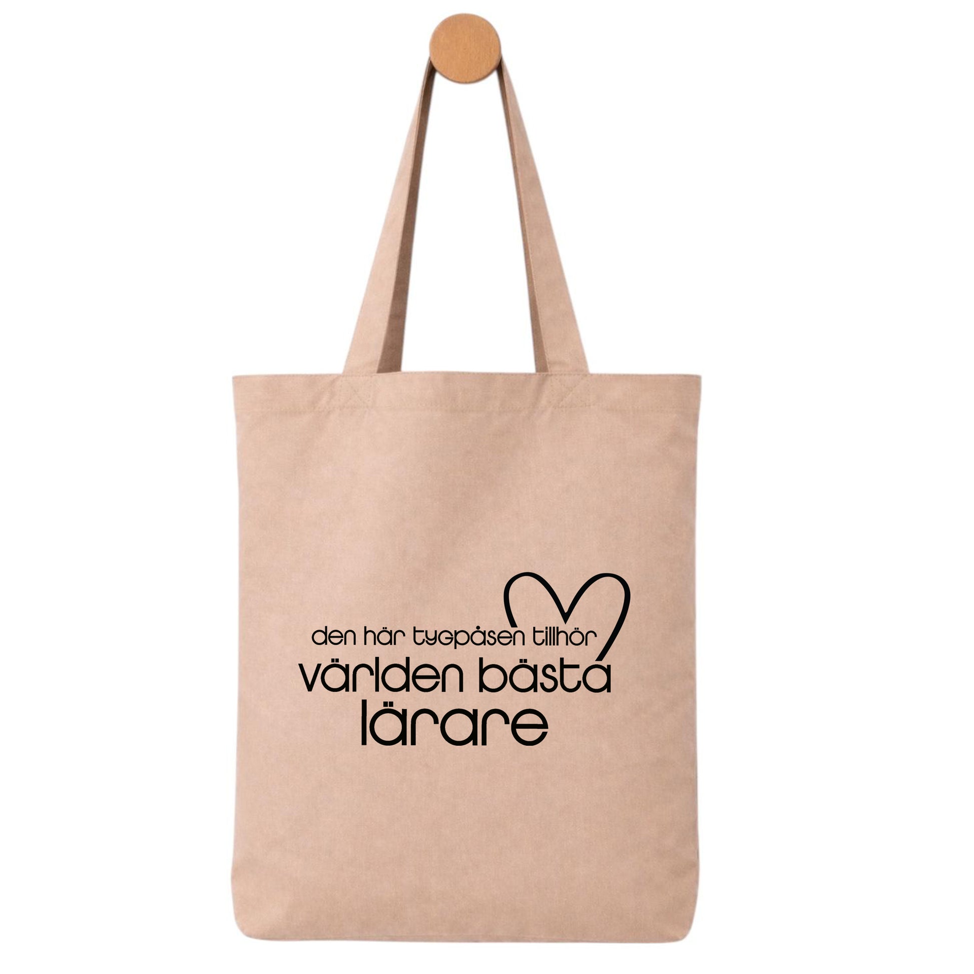 Denna tygpåse med texten ”Den här tygpåsen tillhör världens bästa lärare” eller ”världens bästa pedagog” är en uppskattad och tidlös gåva till någon som verkligen gör skillnad.